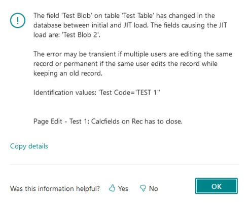 - Blob Field shown on the Page -> OnAfterGetRecord -> Rec.CalcFields -> No Error